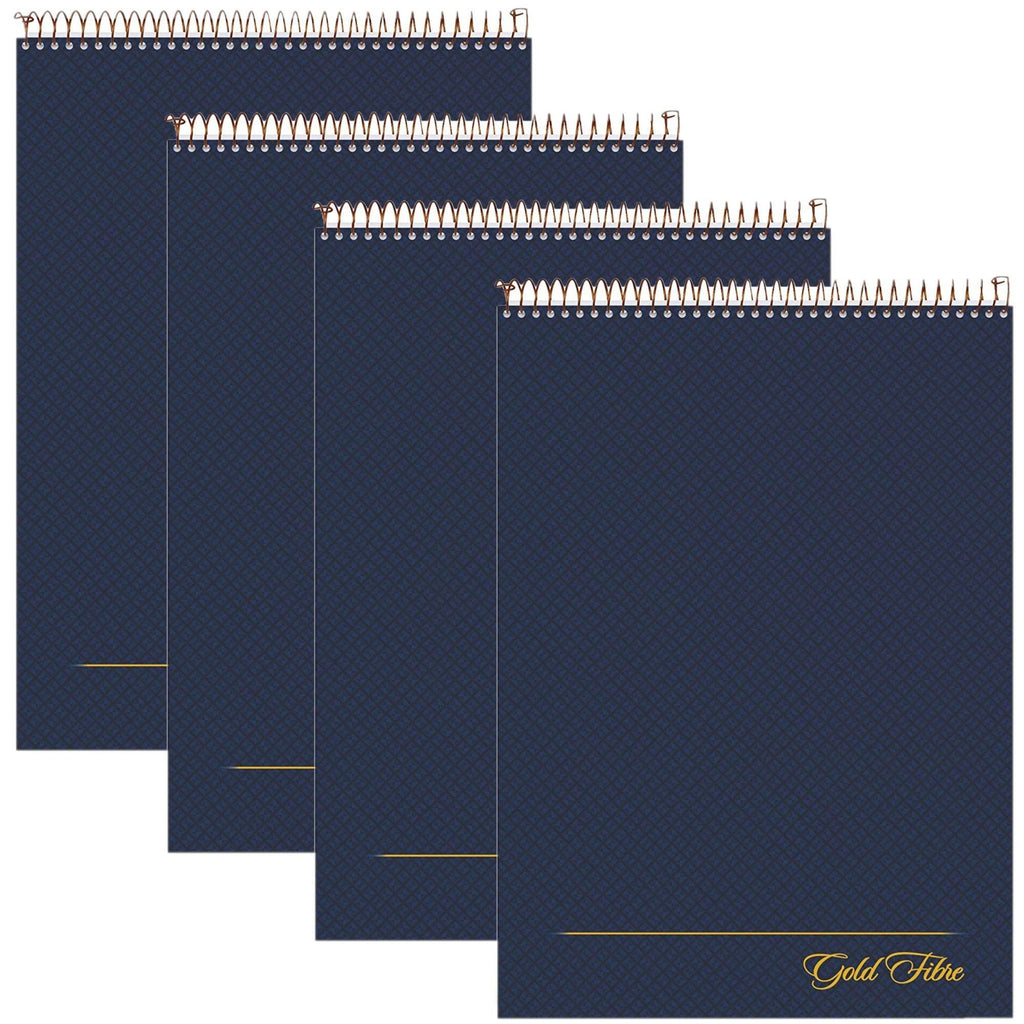 AMPAD Gold Fibre Project Planners help you confidently track and manage large jobs. Premium-weight paper is project ruled with customizable subject line, author & date box and numbered lines to help you prioritize tasks. A snag-resistant coil, sturdy cover and extra-strong back make this book perfect for taking notes on the go. The top-bound format is ideal for lefties. 8-1/2" x 11-3/4". Project ruled. 70 Sheets. Navy cover. PACK of 4