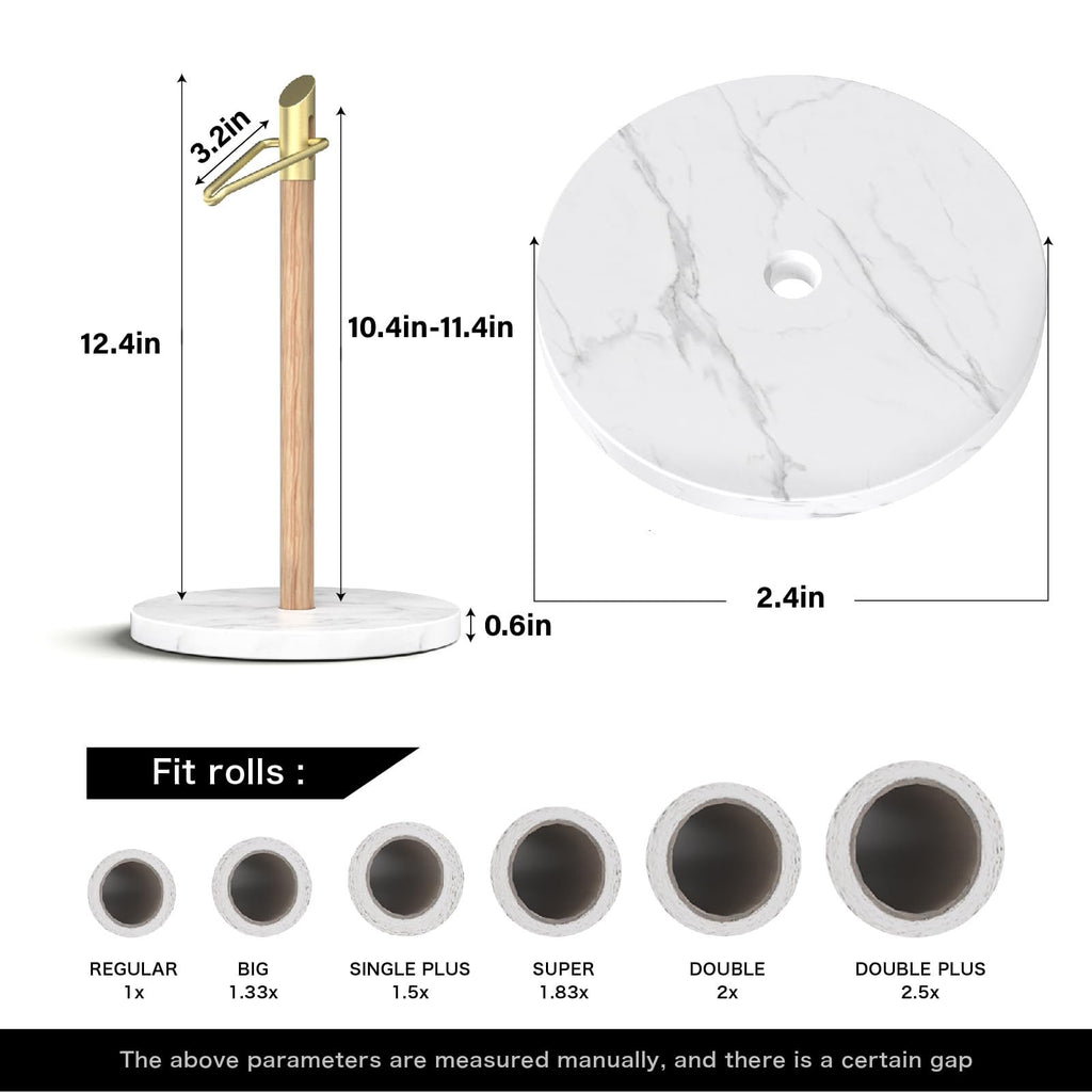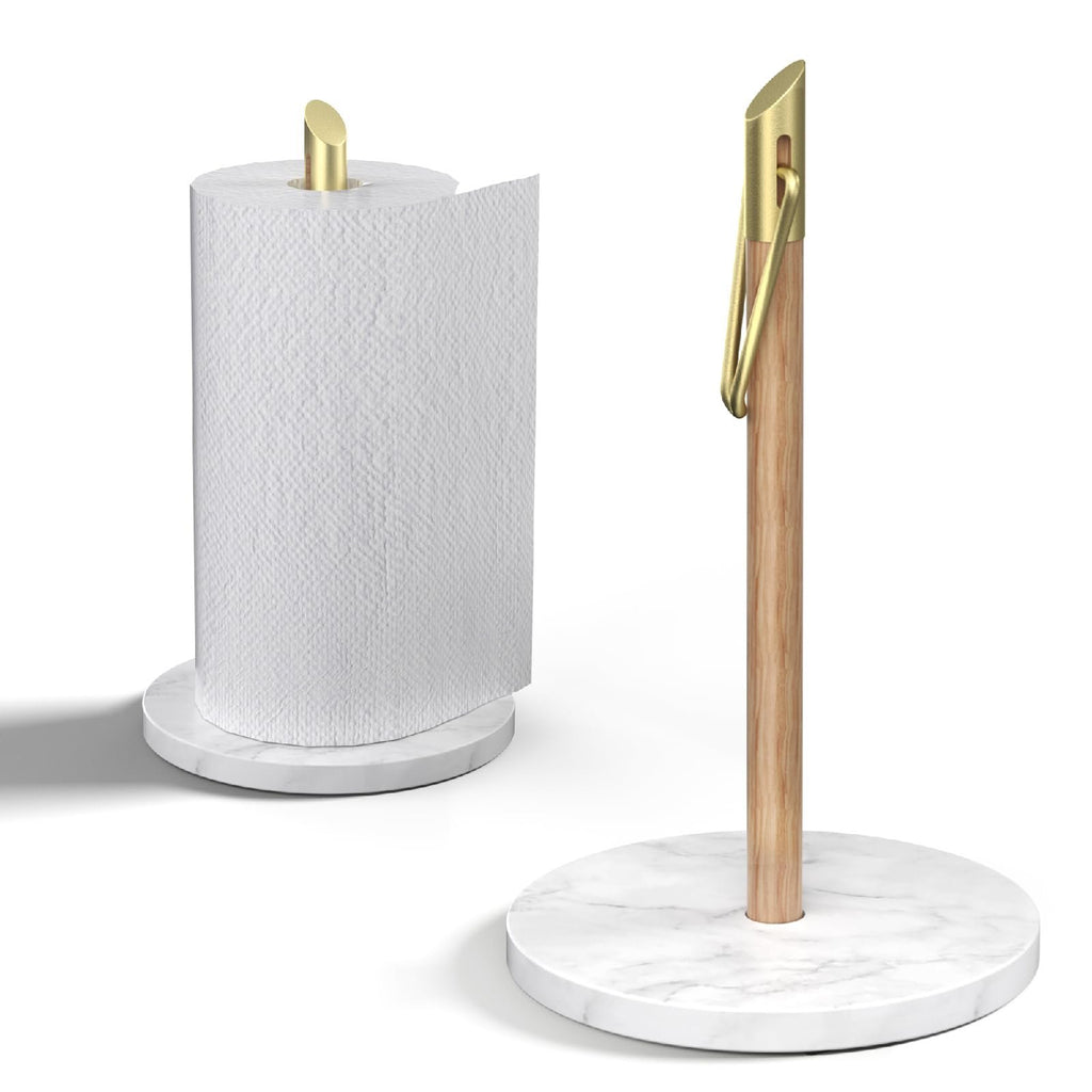 - ?Marble Paper Towel Holder Stand?Made of natural marble base: Sturdy and durable, combine with wood pole and high-quality stainless steel: Unique and luxury. Excellent decoration for your kitchen. This countertop paper towel holder is also a great gift for your families&friends. The pattern of natural marble is one of the kind in the world made your gift is one of the kind.