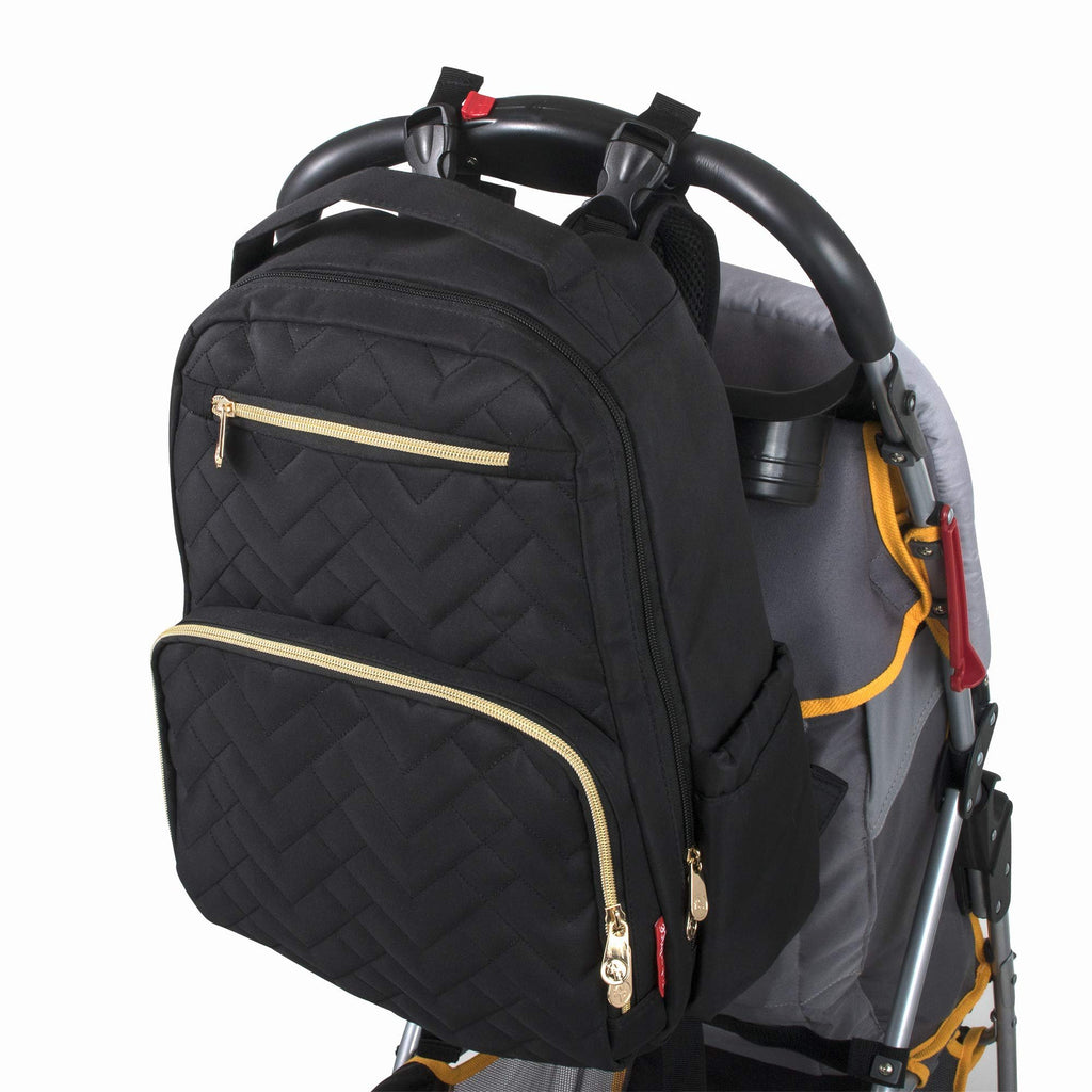 Introducing the Fisher Price Morgan quilted diaper backpack, our latest baby bag with function and style. Pro-fashion and definitely pro-parents, this “super cooler” bag has it all. Incredibly roomy, easily fit toys, games, teething rings, pacifiers, and more. Features include: 1. Adjustable shoulder straps 2. Tablet and phone pockets that fit most devices 3. Stroller attachment clips 4. Portable changing pad 5. Reinforced footed bottom 6. Padded back and padded straps for weight distribution and comfort 7. Additional hanging or carry top handle Fisher Price: Most loved and trusted by moms the world over.