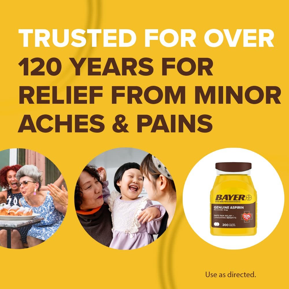 - Genuine Bayer Aspirin provides help to treat minor aches and pains including headache, backache, toothache, and cramps