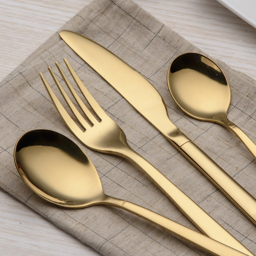 - High Quality Titanium Gold High Temperature Vacuum Plated, It enhanced surface hardness, avoid the scrath on the flatware when using. Perfect for Everyday Use, Holiday Dinner, Party, Wedding, Restaurant, Hotel or Other Formal Occasions.