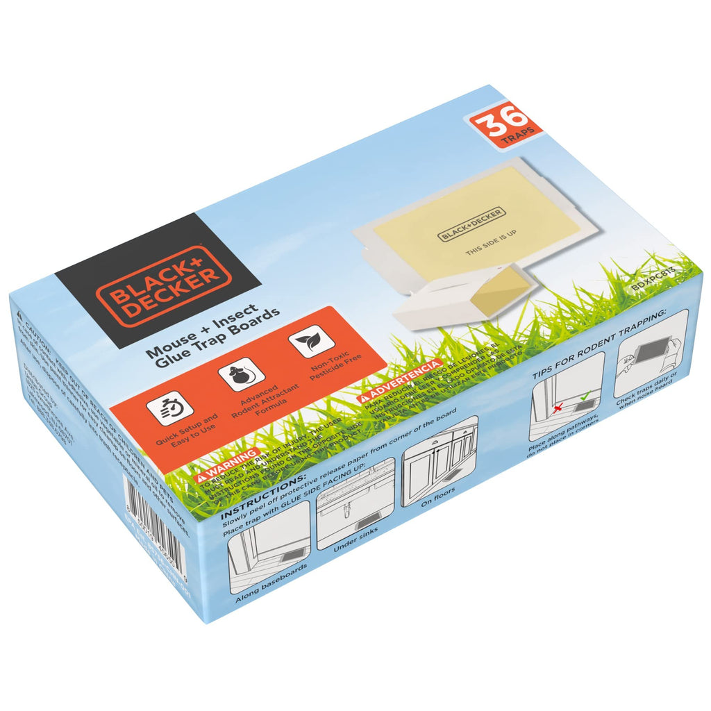 BLACK+DECKER Mouse Trap & Fly Trap- Mouse Traps Indoor for Home- Pest Control Sticky Traps & Spider Traps- Pre-Baited Glue Traps for Mice, Spiders, Cockroaches and Other Insects, 36 Pack