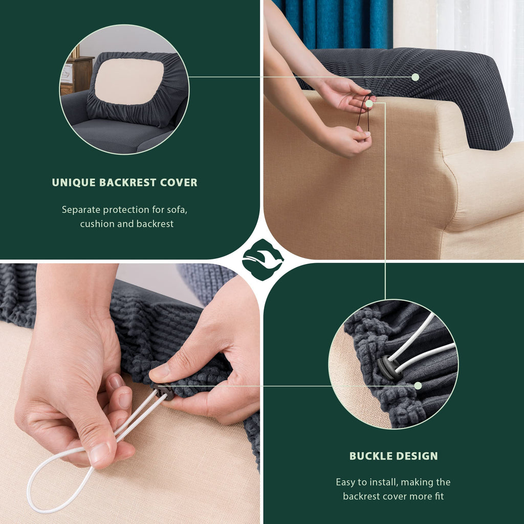 PRODUCT UPGRADE: WE HAVE A PATENT FOR THE APPEARANCE DESIGN AND BUTTON DESIGN OF THIS COUCH COVER. Many customers purchase sofa covers, backrest covers, and cushion covers in batches, so that the colors may not be uniform. In order to solve this problem and make our products more cost-effective, we upgraded our products and sell Multi-Piece Couch Covers for sofa together. Due to different screen display the color of actual product may different from image.