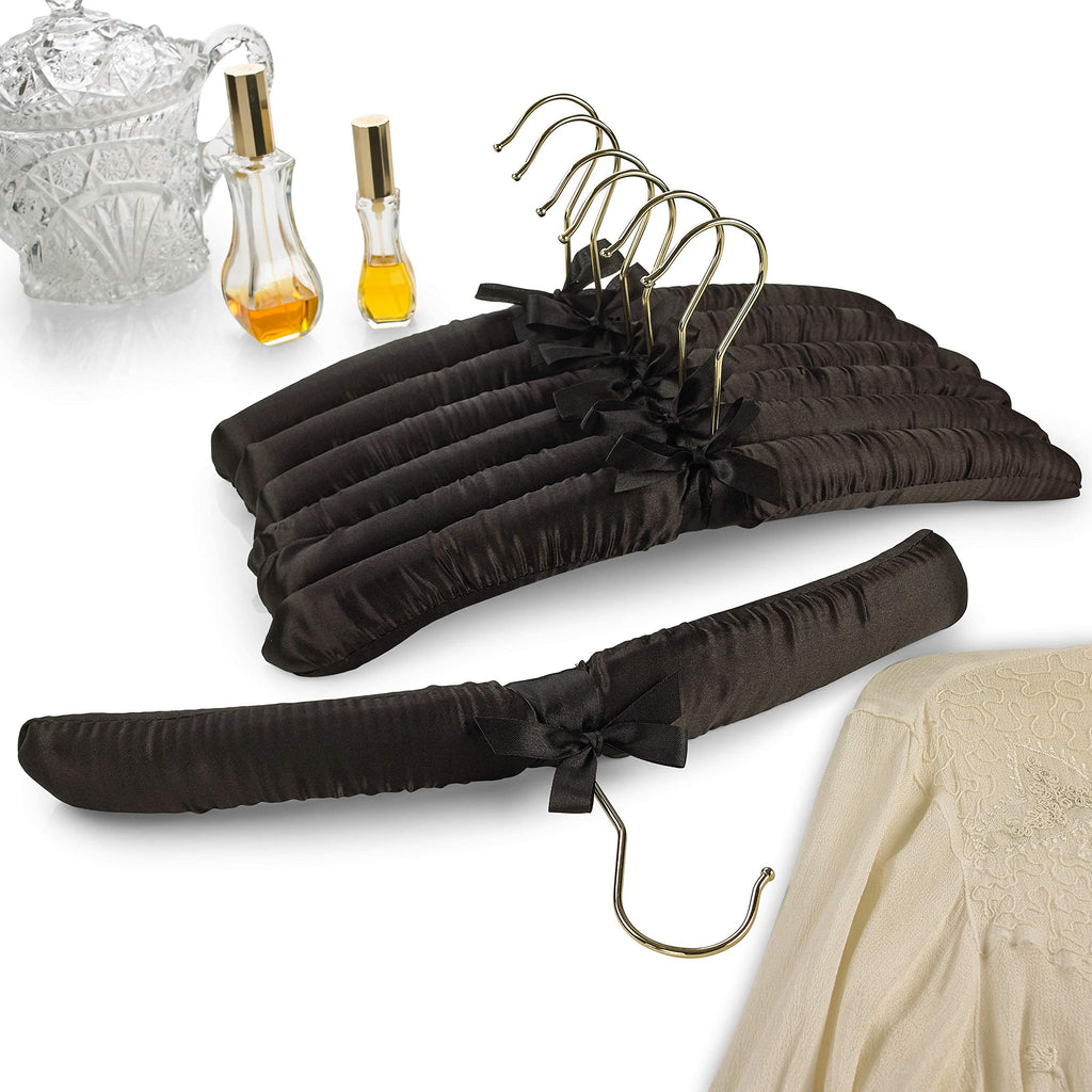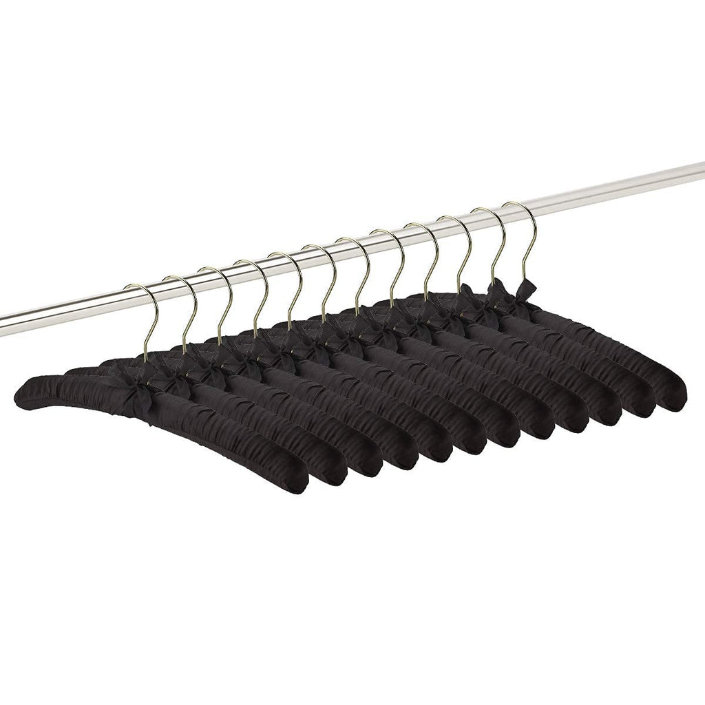 These satin black padded hanger for sweater are - 15 1/2 inches Wide with hooks 4.1 inches tall. They protect, maintain and organize your delicate clothing. Hang your formal dresses, silk blouses, high-quality suits, lingerie, robes, and scarves in full confidence. You will no longer need to worry about damaging wrinkles, snags, or tears. These will become your favorite hangers! The value is superior to the majority of hangers on the marketplace. Buy with confidence today and get ready to want to buy more for all of your closets and your favorite people.