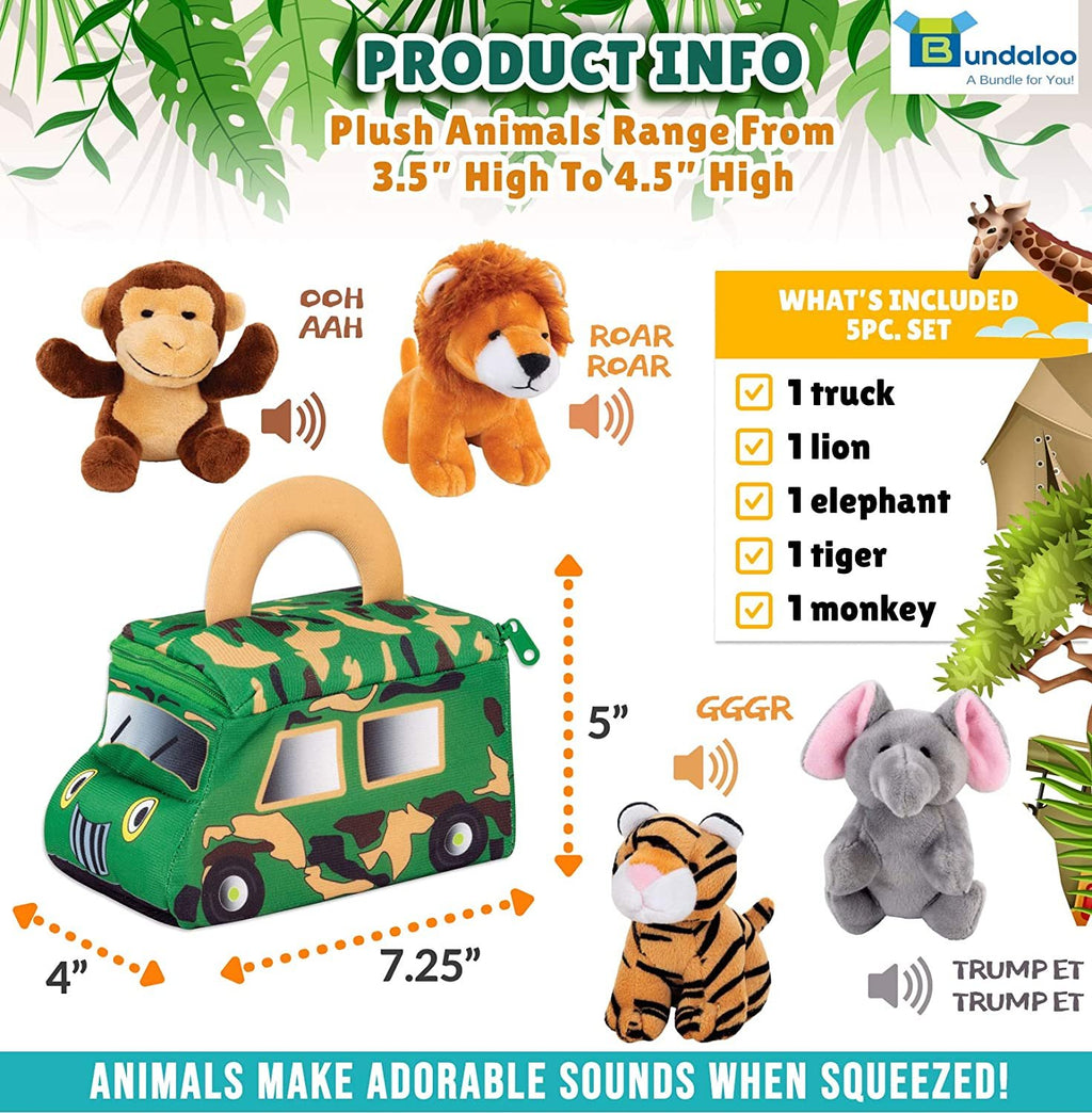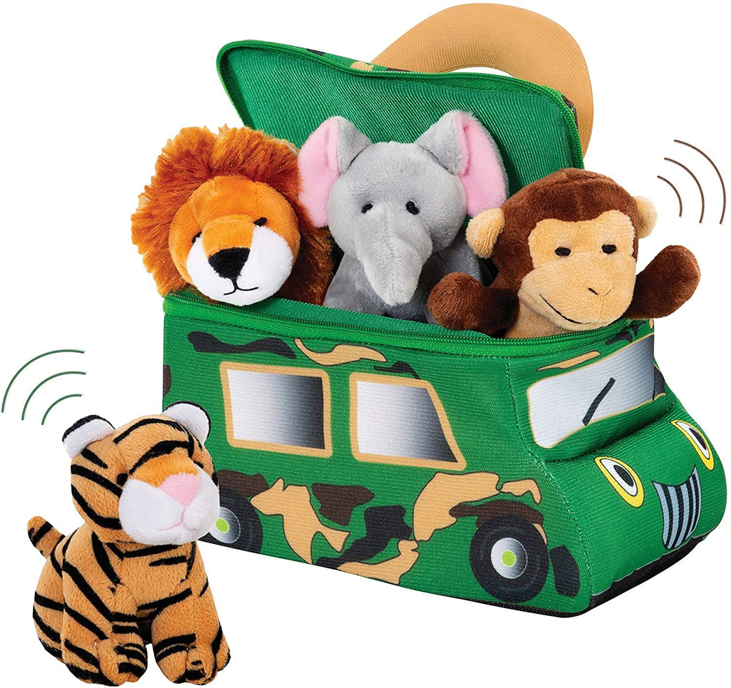 - ✅ KEEP PLAYROOMS CLEAN & ORGANIZED - Are your kids done playing? Store their safari stuffed toys with ease in the safari truck -style zippered bag. Each one can hold all 4 soft toys, so they stay in one place.